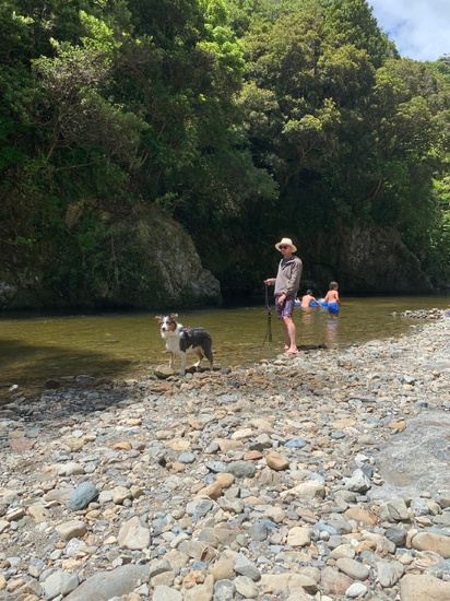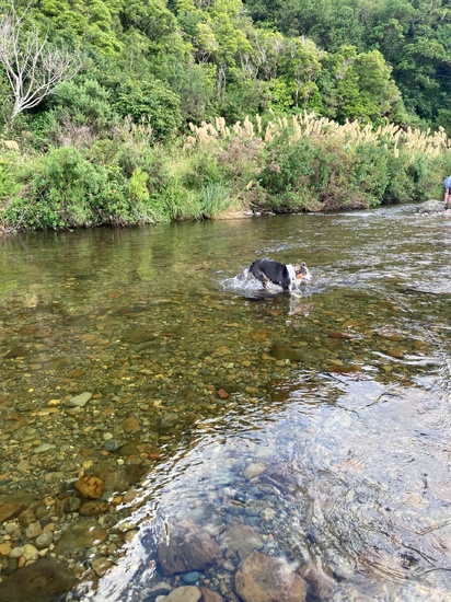 Zorro just couldn’t help himself on our short walk to the cafe, he needed a swim…