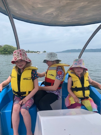 Paddle boat fun with two overboard on purpose and fun at home.