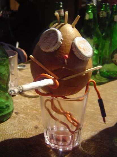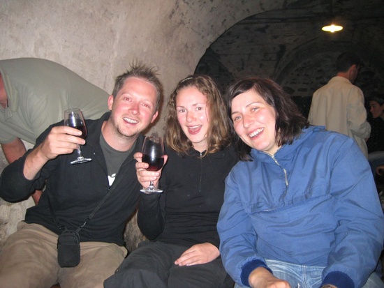 The Sheriff (middle) shows Kristin and Andre how to pour the wine on the first night.
