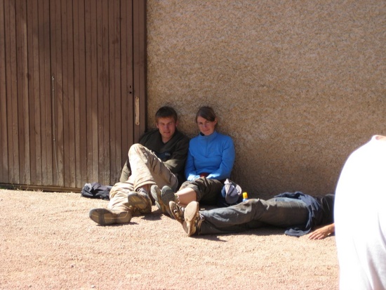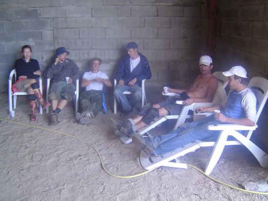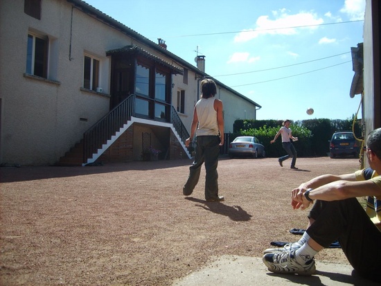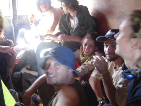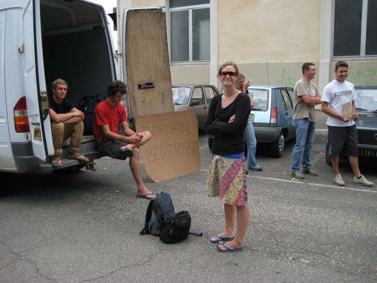 Finally our lift to "Zordan Bertrand" farm arrives. Tim waits patiently in the van.
