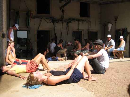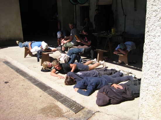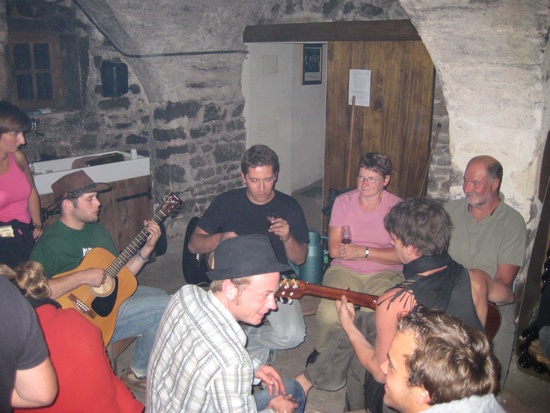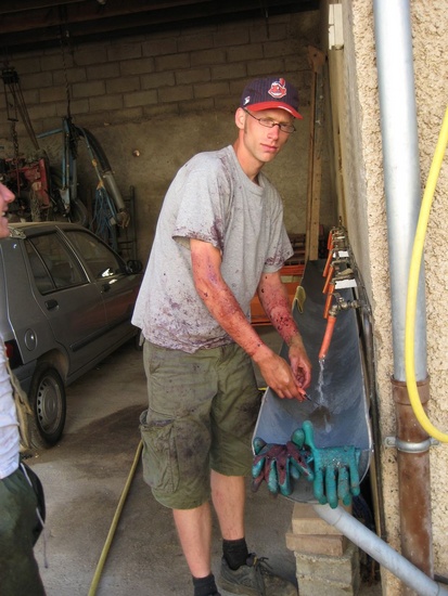 The cave opens! Good wine for all. As well as trying to smooze with the big boss (Claude). Pity his English was as bad as my French.