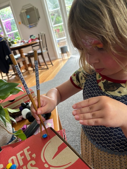 Got some fun face painting at Childspace’s 30th birthday. Followed by M&M chopstick practice for dessert!