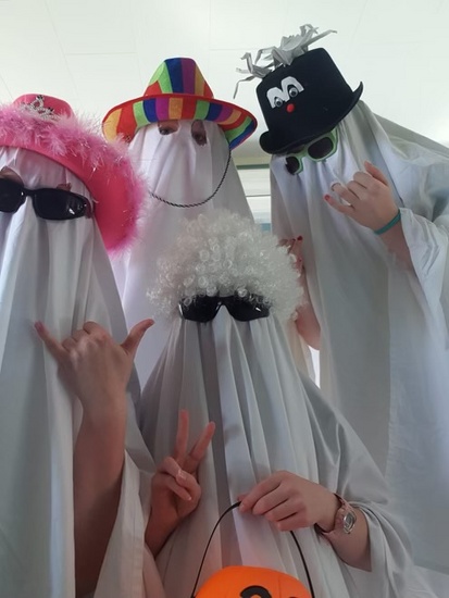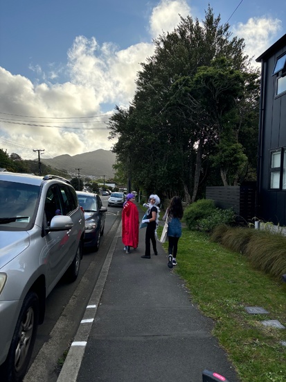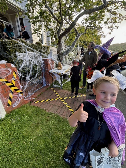 <click here to view image> All hallows eve. Every year it gets better in friend st. Some wicked adult costumes! This year Iris and Olive went off with their friends so it was just buni left! |