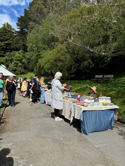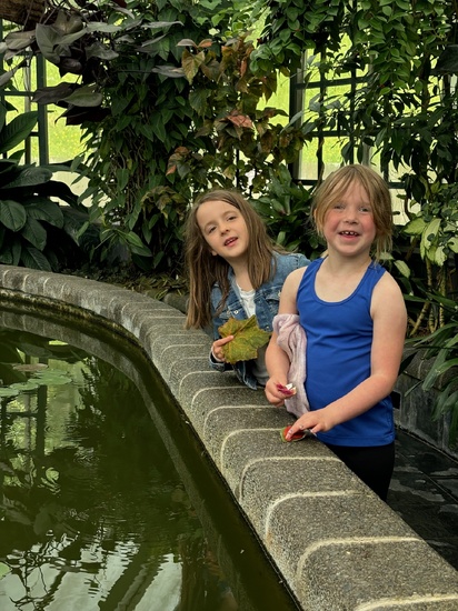 <click here to view image> A cheeky visit to ceramicos exhibition and pottery market. Girls had fun collecting the fallen petals around the gardens and we did some pond research. |