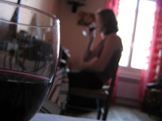 Enjoying a glass of vin.