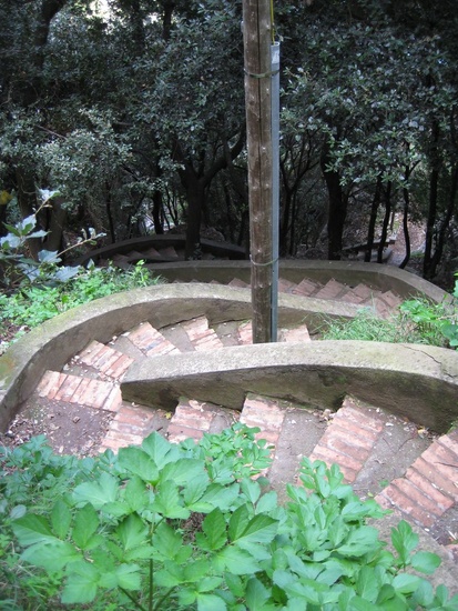 Resting on the footpath steps