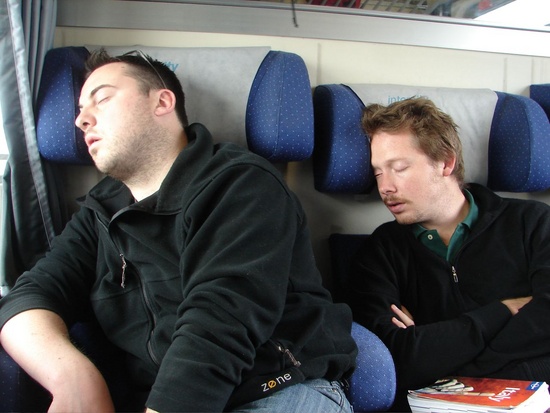 Sleepy train ride to Rome after all night on the ferry to Naples