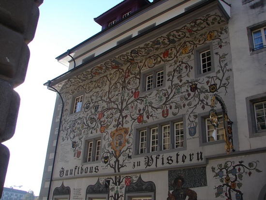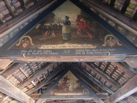 Lucerne: Along Chapel Bridge - with paintings of their history