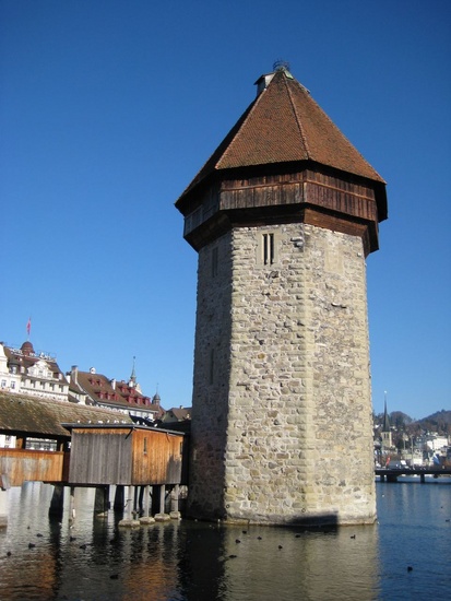 Lucerne: The water tower (was a dungeon) next to Chapel Bridge