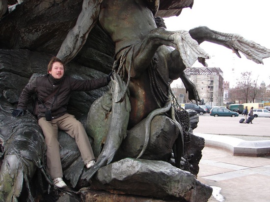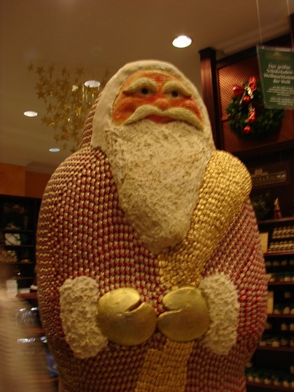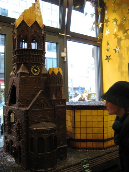 Gini in awe at one of the chocolate buildings inside this fantastic