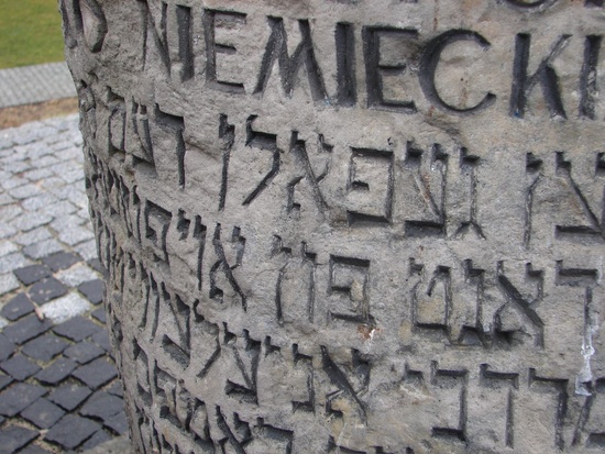 Warsaw: Hebrew on the memorial piece to mark a house in the upraising in Warsaw
