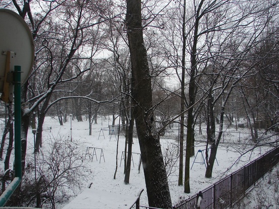 Krakow: Snow! in the backyard of the hostel!