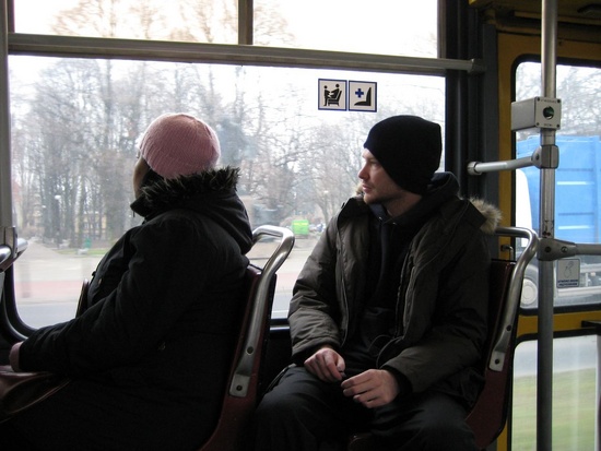 Warsaw: Tour guide Nick on a tram in Warsaw
