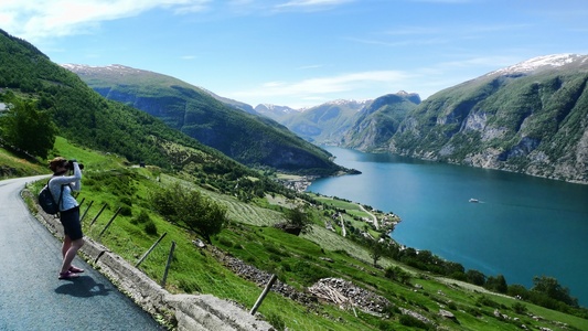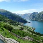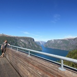 Our last day in Aurland before our ferry to Bergen departed, we decided that our legs weren't as sore as they could be and hiked 7km up the winding road to a newly constructed look-out over the Aurland valley's Fjord. The lookout was pretty scary, with glass sides and jutting way out over the edge with nothing apparent supporting it, but the view was again, spectacular.