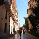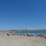 After our touristy piece was done, we were hungry. Paella, the one pan rice dish is originally from Valencia so we just had to try it. Along the waterfront overlooking the beach were numerous restaurants touting the best paella in town, so we picked one that was busy with a beach side table for two and sat down. First up - a jug of much needed sangria! I have to say that this was the best sangria I have tasted. The waiter carefully picked the perfect amount of fruit and ice cubes for each glass and it was divine. Refreshingly good. Next course - the paella. We decided on a seafood paella and were not disappointed. The large paella pan for two came out and we tucked in to prawns, muscles, squid and perfectly cooked rice in a tomato type sauce. It was fantastic.