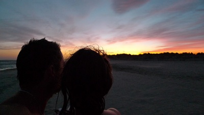 Unfortunately what happened next was the first mishap of the trip. We stood up to leave only to discover that my manbag was no longer with us. We assume it was stolen by a disfigured lady who passed by and distracted us while her young son reached under the tablecloth and took off with the goods. After a panicked look around the area including all the rubbish bins, we cut our losses. Luckly, all that was in the bag was a dirty singlet, a spare camera battery and my keys. Crap. The keys to Smurfy and to the bike lock were gone! All was not lost though, as we had spare keys for both back in Smurfy - and by a stroke of luck, we left the boot unlocked on the off chance of this happening. So we caught a taxi back to the campsite, retrieved the spare keys and then decided to punish ourselves for being so silly by running / walking the 12k back to town to retrieve the bikes. We made it in to town in time for a much needed dip in sea and a slow bike ride home to Smurfy to drown our sorrows.