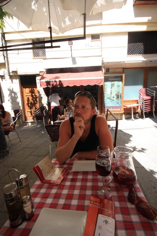 In need of a stiff drink after the display that felt like it had taken years off one's life we found a nice cafe in a quiet square and proceeded to drink the afternoon away with a jarra of Sangria and more of the lovely Spanish omelet we have come to love. The rest of our time in medieval sword making city of Toledo was spent lounging around the pool (the first we have had to pay for!) with the town dotted in the background. Tom finished our day with our first beef steak (bull or cow? no one will ever know) some much needed iron for some.