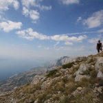We blindly took the steep Biokovo National Park road up and put Smurfy through his paces on every corner and pushed my nerves to the limit with every passing car. They were all tight squeezes with a shear drop below. At this point Smurfy's oil can orange light would flash us every time we turned left but Tom had checked the oil so we started wondering perhaps it is the break fluid? Was that something we were suppose to top up? Hmmmm breaks would definitely be needed on the return journey down.