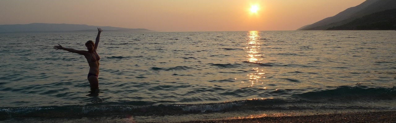 After a look around Bol on the island we followed a flyer which a scooter man gave us to our campsite for the night, Kamp Mario, which was just tiny & perfect. We splurged with dinner out and enjoyed two whole fish accompanied with potato & spinach with an octopus salad for starters at a cute idyllic restaurant on its own with the water lapping at our feet.