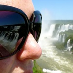 After a quick chicken burger lunch (chicken burgers were one of our staples in out-of-town Brazil), we ventured to the entrance to the falls, bought our tickets and jumped onto the 15 minute bus ride to take us to the entrance of the waterfall walk. The walk was action packed. It started with an overview outlook of some of the falls as you meandered along past naughty raccoons, oversized insects, reptiles and tourists, and ended up opposite "Garganta do Diabo" - the largest mouth of the waterfall - a u-shaped, 82 meter high, 150 meter wide and 700 meter long cataract (thank-you Wikipedia) expanse of flowing water. The sound alone was deafening and the site of which was incredible. We were told that the Brazilian side of the waterfall gave a good overview without getting too close - but we managed to get pretty wet and get very close to the tumbling torrents. Most impressive.