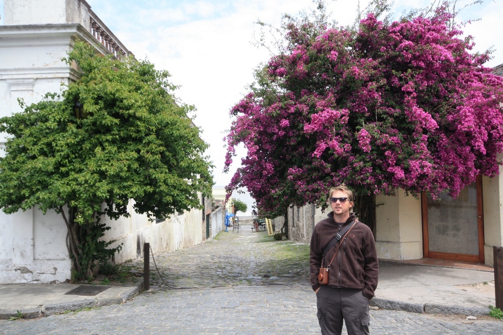 We enjoyed the last of our red wine aboard and after 2 hours we arrived in a cute little colonial style town call Colonia Del Sacremento, which was originally a Portuguese settlement. It had large open streets, lined with plain trees which were a lovely green. The town had a lovely sea front cafe culture as it was a popular getaway for locals on the weekends. We enjoyed more steak (I was starting to worry we would get the meat sweats!) but walked it off by looking around the old colonial building scattered along the waterfront. We also enjoyed the hostel with its large courtyard, funky old wooden doors with windows and interesting tiled shared bathrooms. It really did feel like an early settlers accommodation, all we needed was a pair of tights for Tom, a musket and me in a lovely dress with an inch of mud around my petticoat.