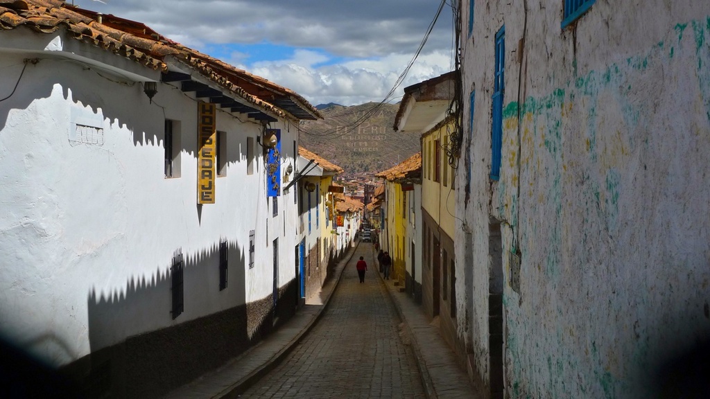We arrived at Cusco and jumped in a taxi to take us to our hostel - a lovely hostel by the name of Hostel Los Ninos I which we would end up being very familiar with over the coming days. After checking in and dropping our bags, we set out to explore the town a little and to also pay Peru Treks a visit to pay the remainder of the 4 day Inca Trail trek expenses and to pickup our free t-shirts. Cusco is a fantastic town. Nestled between various mountains, and at 3,400m above sea level, it was quite a sight to behold - especially when viewed from above.
