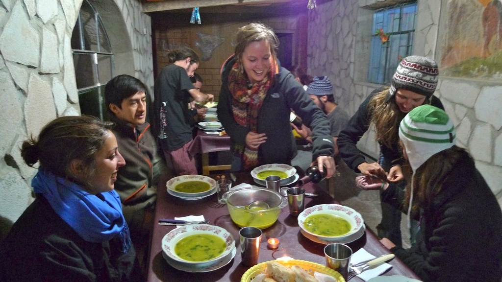 The landscape was so grand in size and powerful in colour and we got the driver to pull over oh just a few dozen times! After an awesome day seeing the flamingos we found our second bed for the night in the middle of a desert somewhere. We all shared a green watery soup and bought a few bottles of wine to celebrate my 29th birthday. We later enjoyed the clear skies and stars which were the clearest stars I have ever seen. Didn't see the southern cross though! We managed to share a room and slept well.