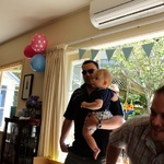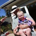 All of her family and friends were there except for those overseas who sent lovely messages, there was an amazing cake (Little Bug Blue) created by Mummy, a slide, a sandpit and a swing which were all put to great use - especially by the older friends. The grandparents came with tasty treats and nibbles to keep the guests happy and Wellington put on a hot sunny day to help with the celebrations, yet again. Lyon managed to eat half the first chocolate cake Gini made and left cooling on the back of the kitchen bench. He also managed to steal a couple of the cupcakes Granny had made (and lick the icing off a few more). He's never one to miss out!