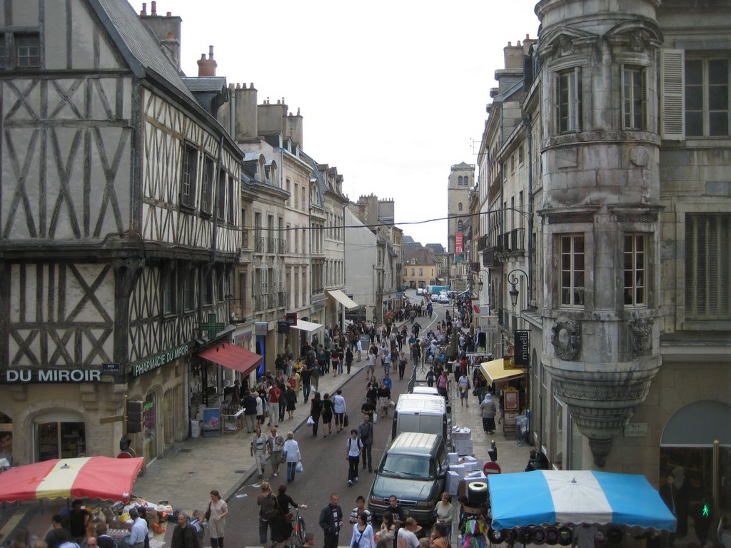 While walking down some of Dijon's narrow streets you really get the sense of history, there are still a lot of the 12th Century houses still standing even despite Dijon being invaded by the Prussian army in 1870 during the Franco-Prussian War. So you get to see the houses with the wooden frames showing on the outside, the tiny windows, the wood craft detail and the crazy leans they have got going on. Through many other streets displays lots of different eras through the architecture, one being the Échauguette Berbis, the watchtower as they curve around a corner giving you the best view point from the building.