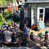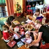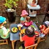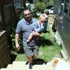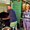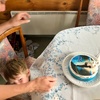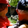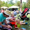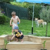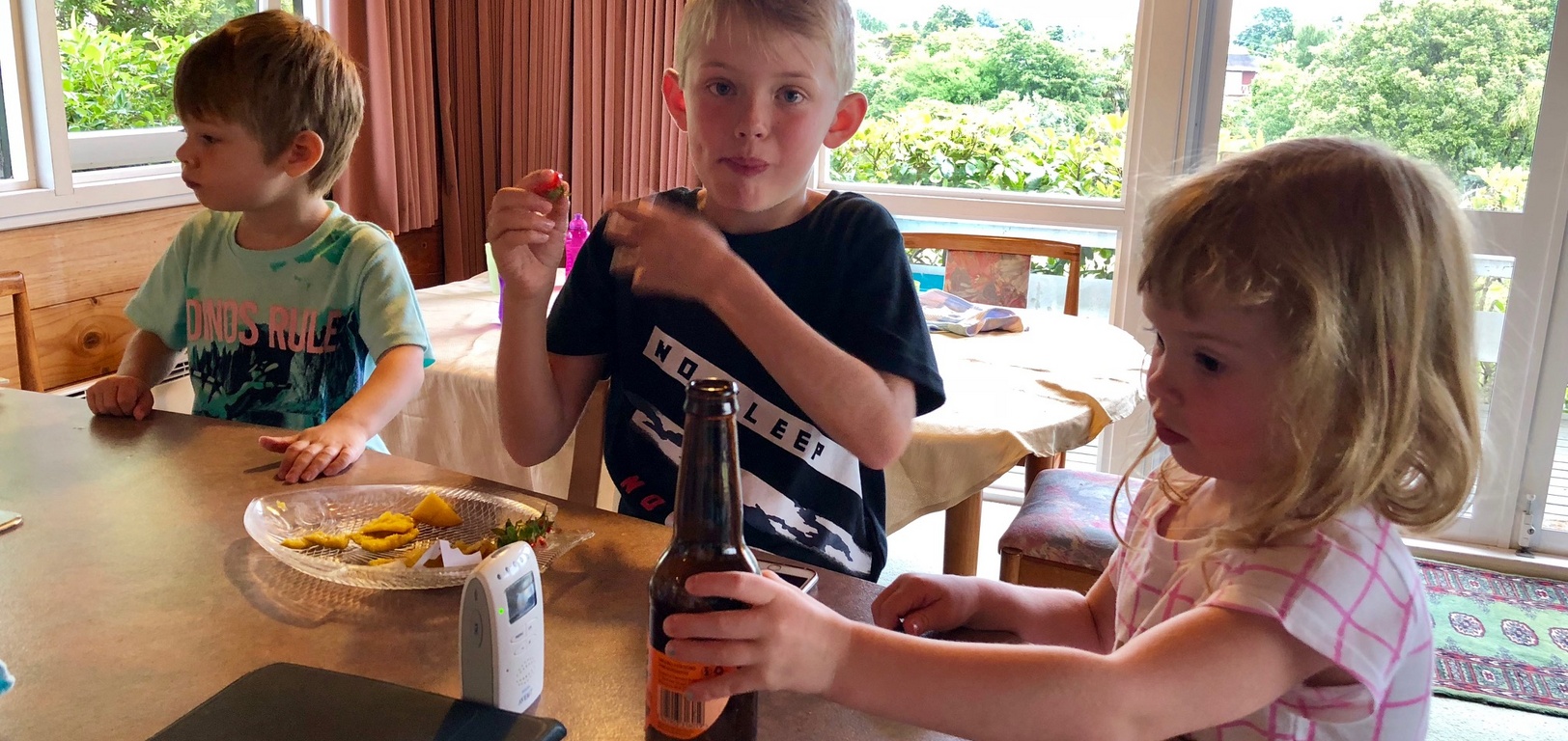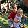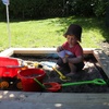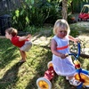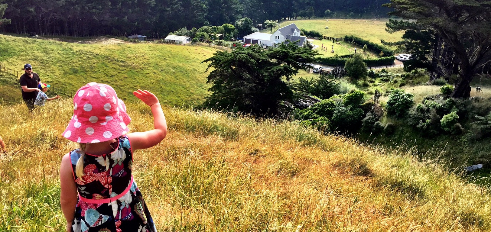 Waving to mummy (ants down below) after walking up the hill behind Andy and Nicky's place. Had a lovely New Year's Day BBQ with friends.