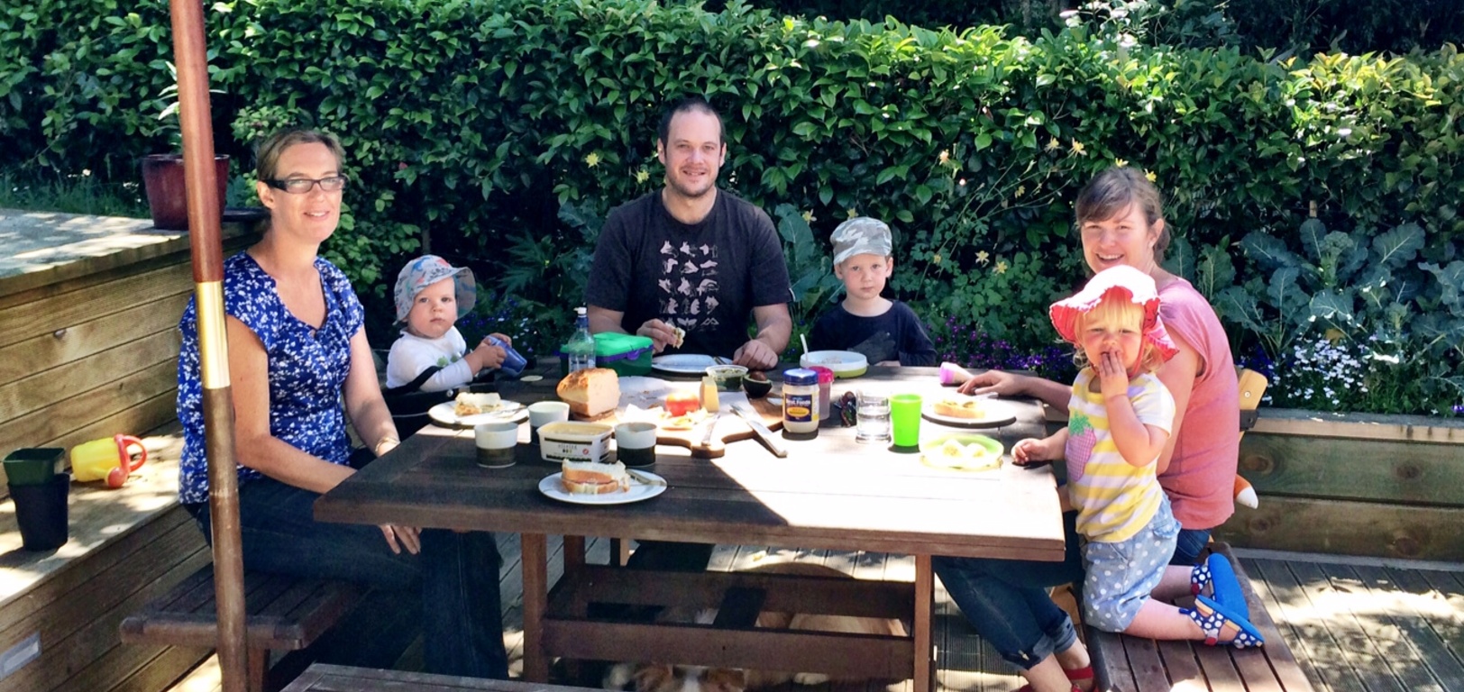 We were joined by the Thompsons for lunch in the sun. The kids had fun chasing Lyon and then hanging in his crate. Olive was so excited she decided not to nap today.