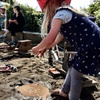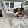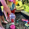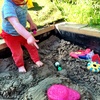 A lovely sunny day, a great day for water play at kpc. Olive made a angel from pegs and fabric and got involved in the volcano and making potions in the mud puddle. Iris enjoyed the water so much so climbed in! At the end olive dressed up as an elephant, packed a suitcase and was off to Auckland!